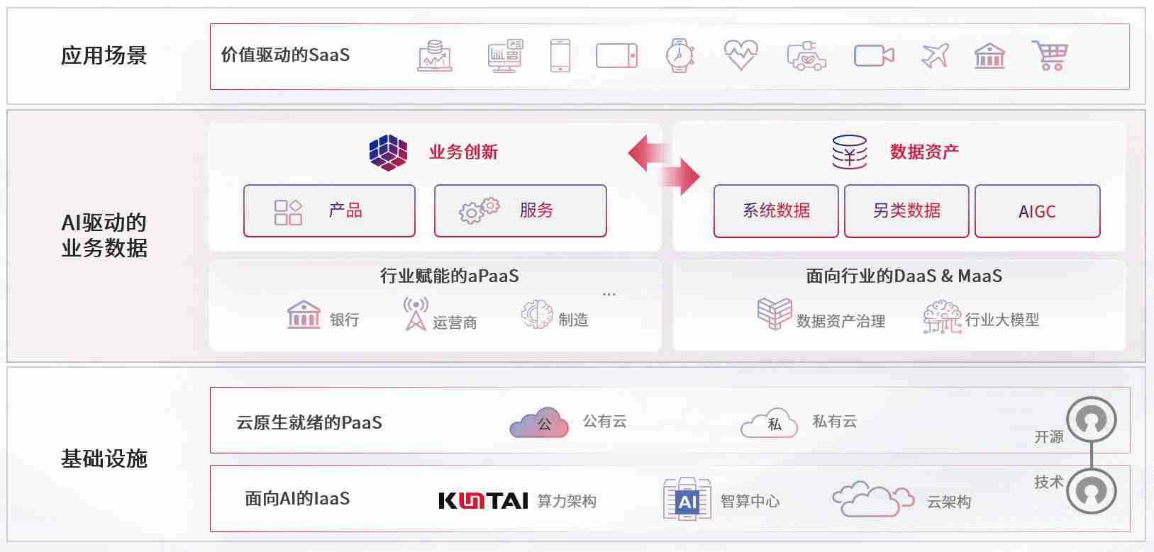 数字时代,,,围绕企业数字化转型的关键要素,,,,PG数码开创性的提出数云融合战略和技术体系框架,,,,着力在云原生、、、、数字原生、、AI原生和信创产业上架构产品和服务能力,,,,为处在不同数字化转型阶段的快消零售、、汽车、、金融、、、、医疗、、、政企、、、、教育、、、运营商等行业客户提供泛在的敏捷IT能力和融合的数据驱动能力,,,,构建跨界融合创新的数字业务场景和新业务模式,,,助力企业级客户建立面向未来的核心能力和竞争优势,,全面推动社会的数字化、、、智能化转型升级。。。